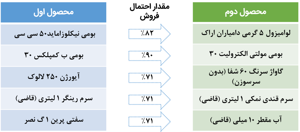 در اینجا به شما خواهیم گفت که چه محصولاتی با یکدیگر مرتبط هستند و با فروش محصول اول، احتمال فروش کدام محصول دیگر بالا خواهد رفت. این به شما کمک میکند که چیدمان محصولاتتان بر اساس همبستگی بین آنها باشد و بتوانید میزان فروش تان را افزایش دهید و یا تامین کالای هوشمندانه تری داشته باشید.