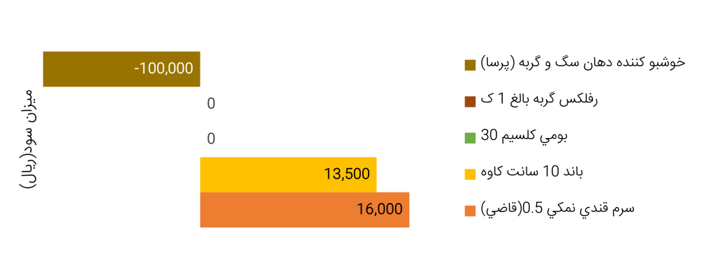 - مقادیر صفر نشان دهنده برابری قیمت خرید و فروش و مقدار منفی نشان دهنده فروش زیر قیمت خرید و یا دور ریزی کالا است.